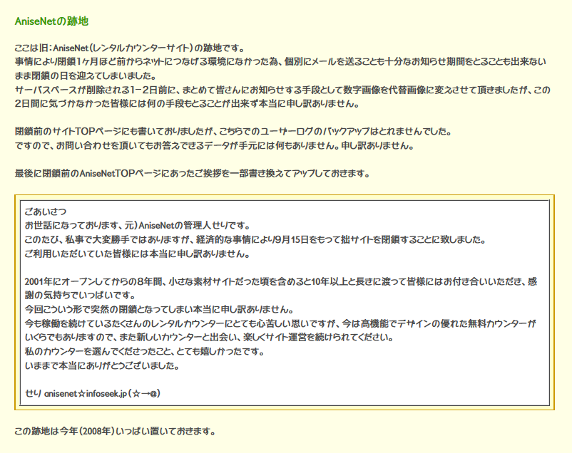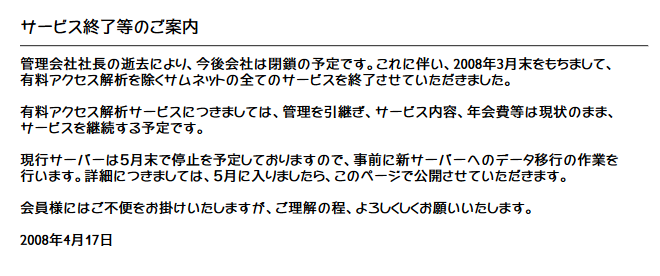 それらを含めiswebの管轄下にあったウェブホスティングサービスそのものが完全に終了した。
